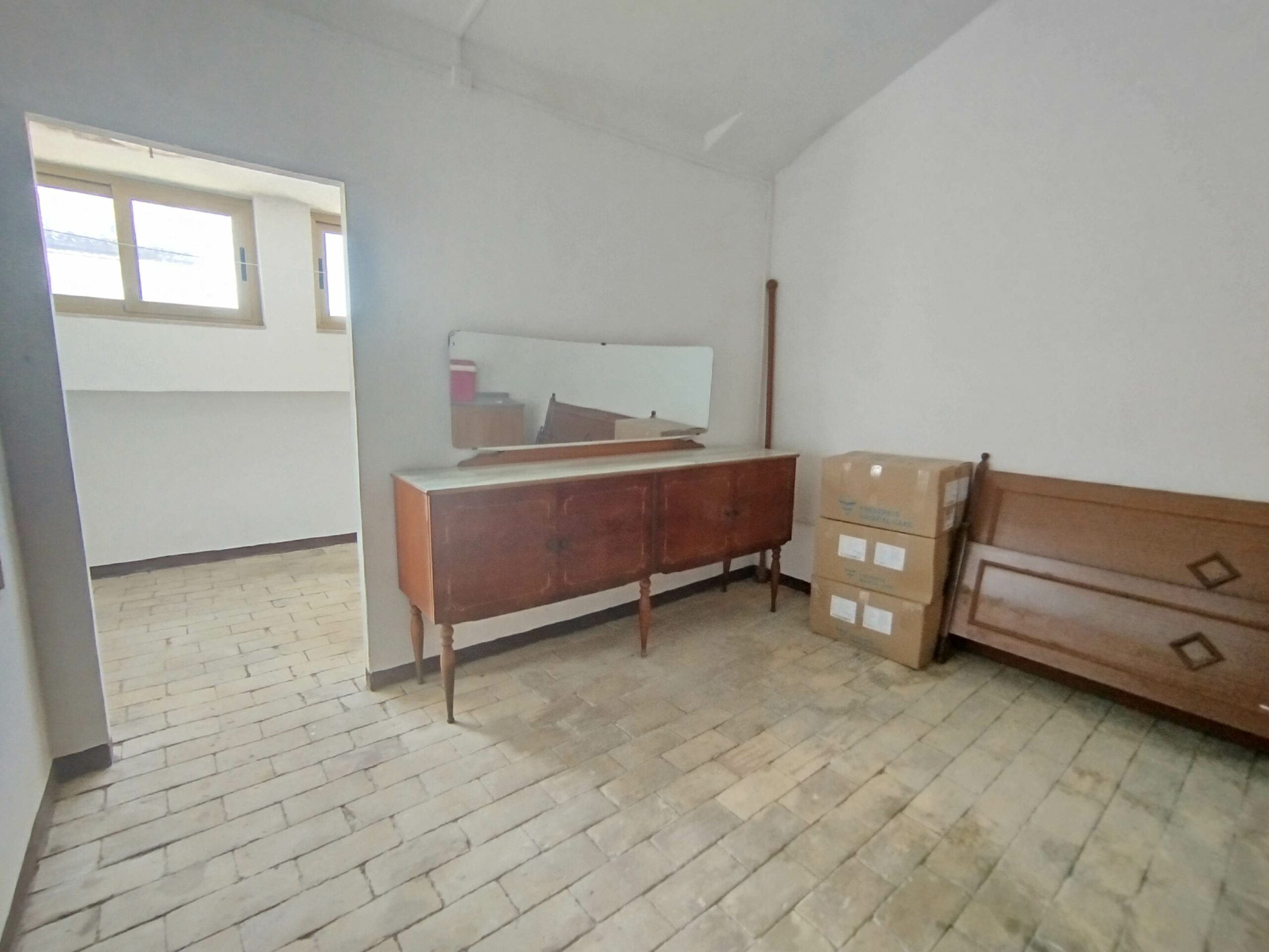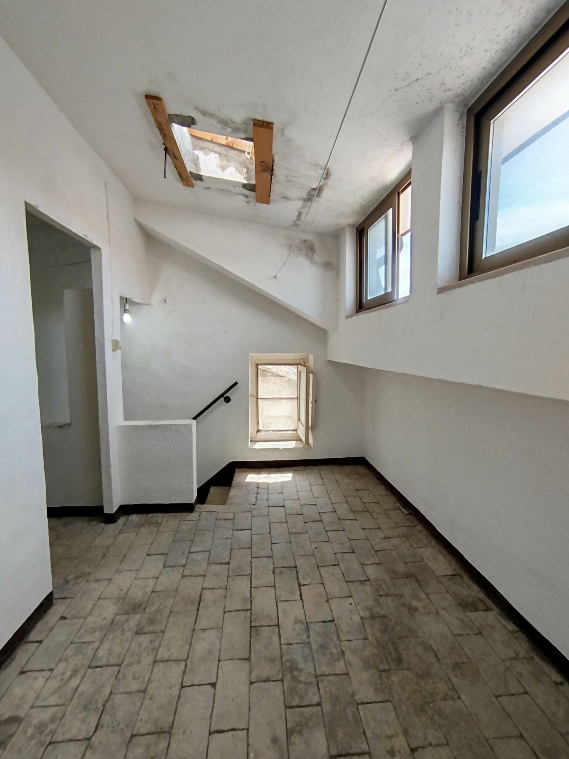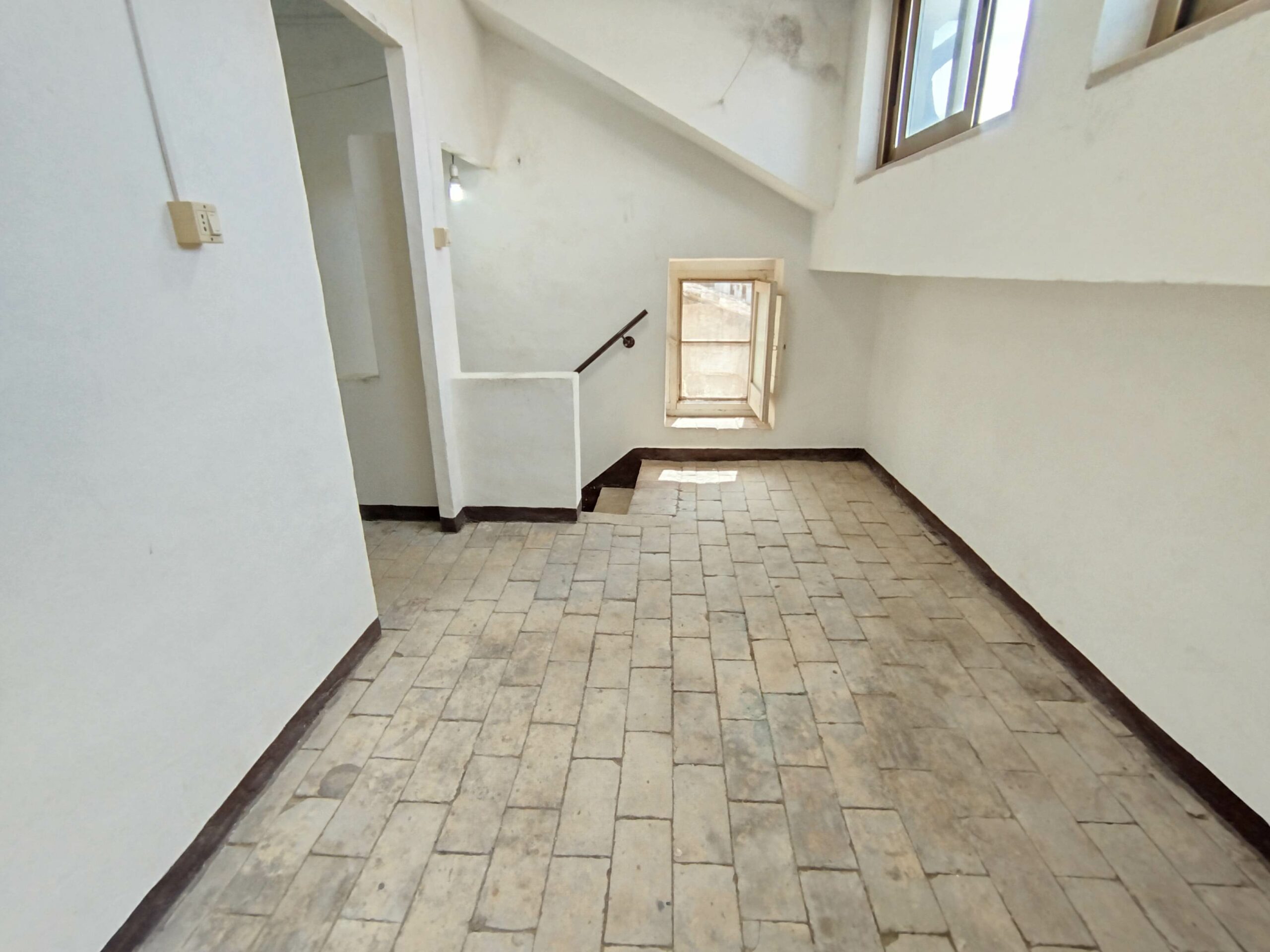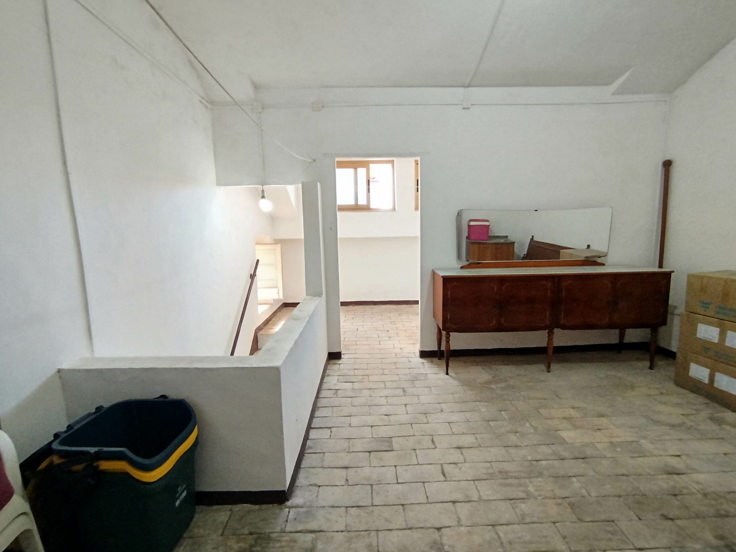 Salendo la scala in mattoni a vista, che da sola racconta l’artigianato e la solidità di un tempo, si raggiunge il piano sottotetto, un ambiente sorprendente: completamente pavimentato in mattoni, praticabile e dotato di aperture che donano aria e luce naturale. Un luogo da vivere e reinventare, che profuma di passato ma offre spazio per i tuoi progetti futuri.