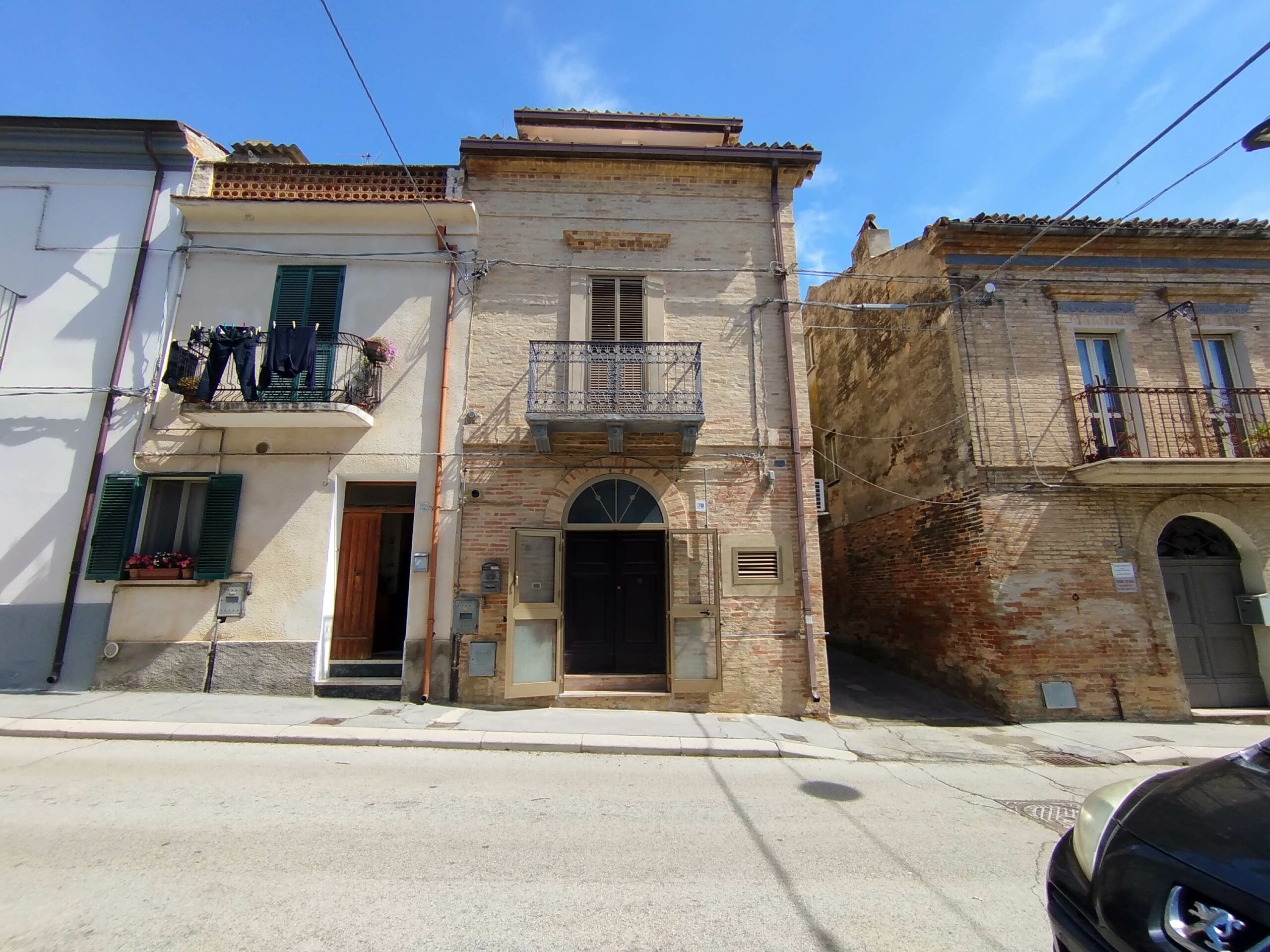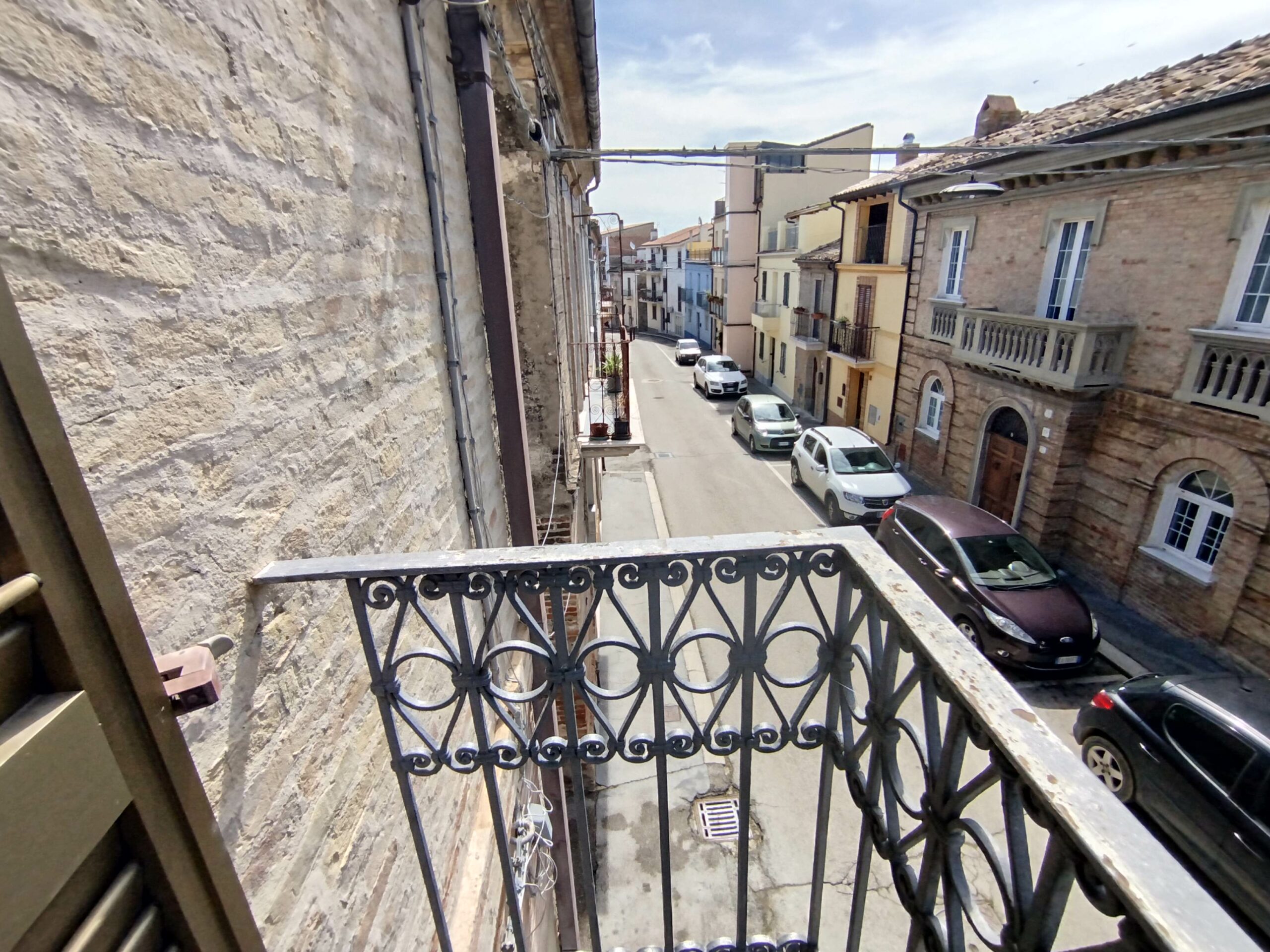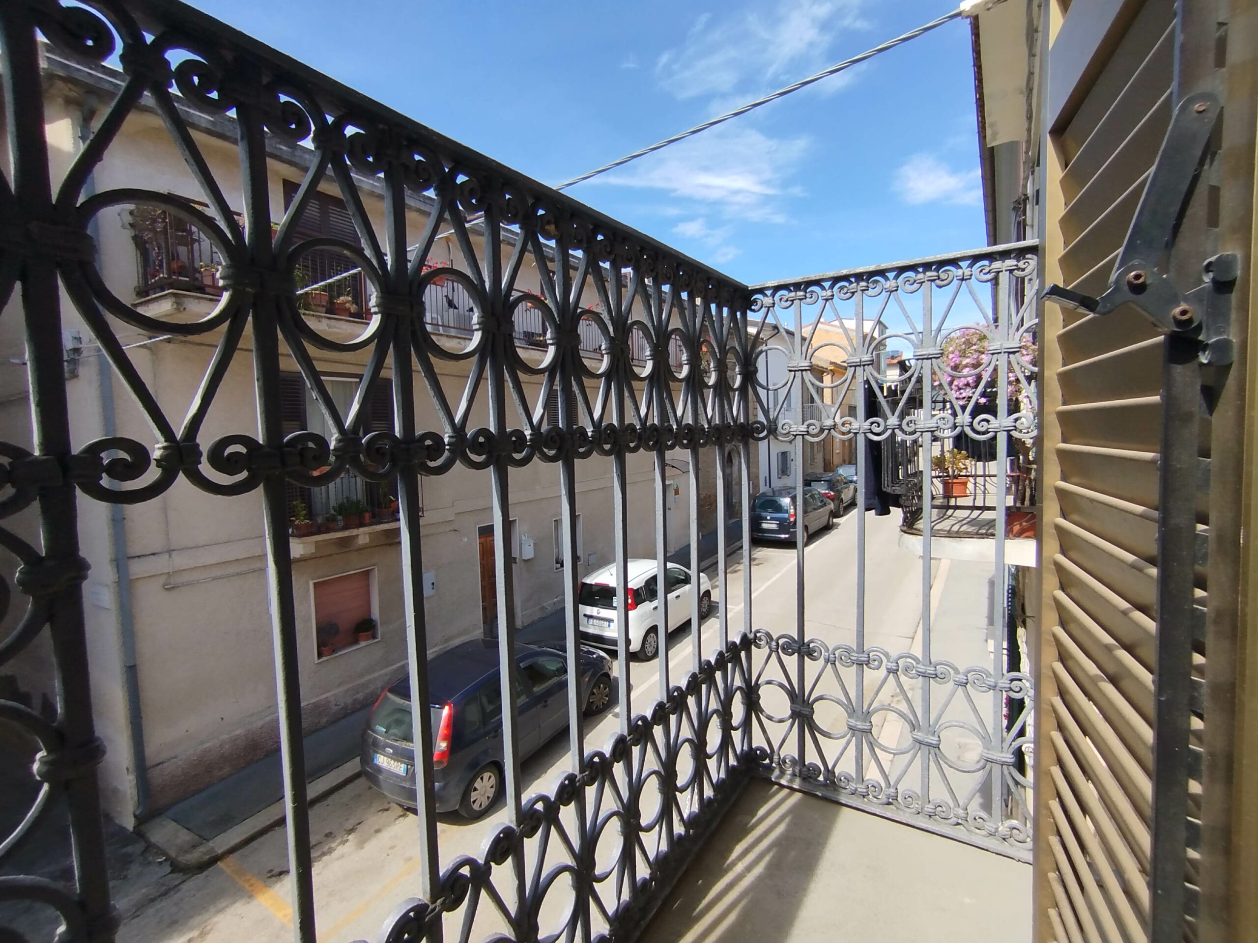 Ad accoglierti è un possente portone in legno massello, originale, che custodisce la storia di chi ha vissuto qui prima di te. Sul fronte, il balcone in ferro battuto aggiunge quel tocco di eleganza antica che ancora oggi emoziona.