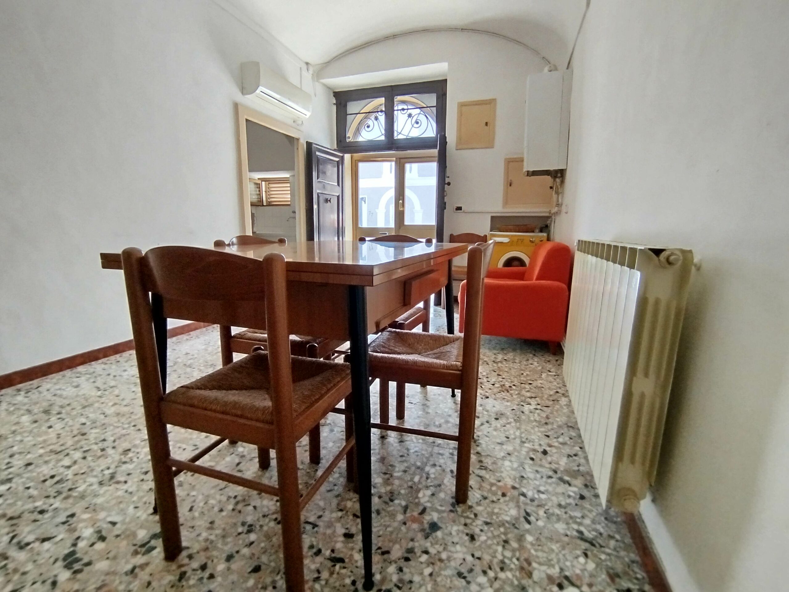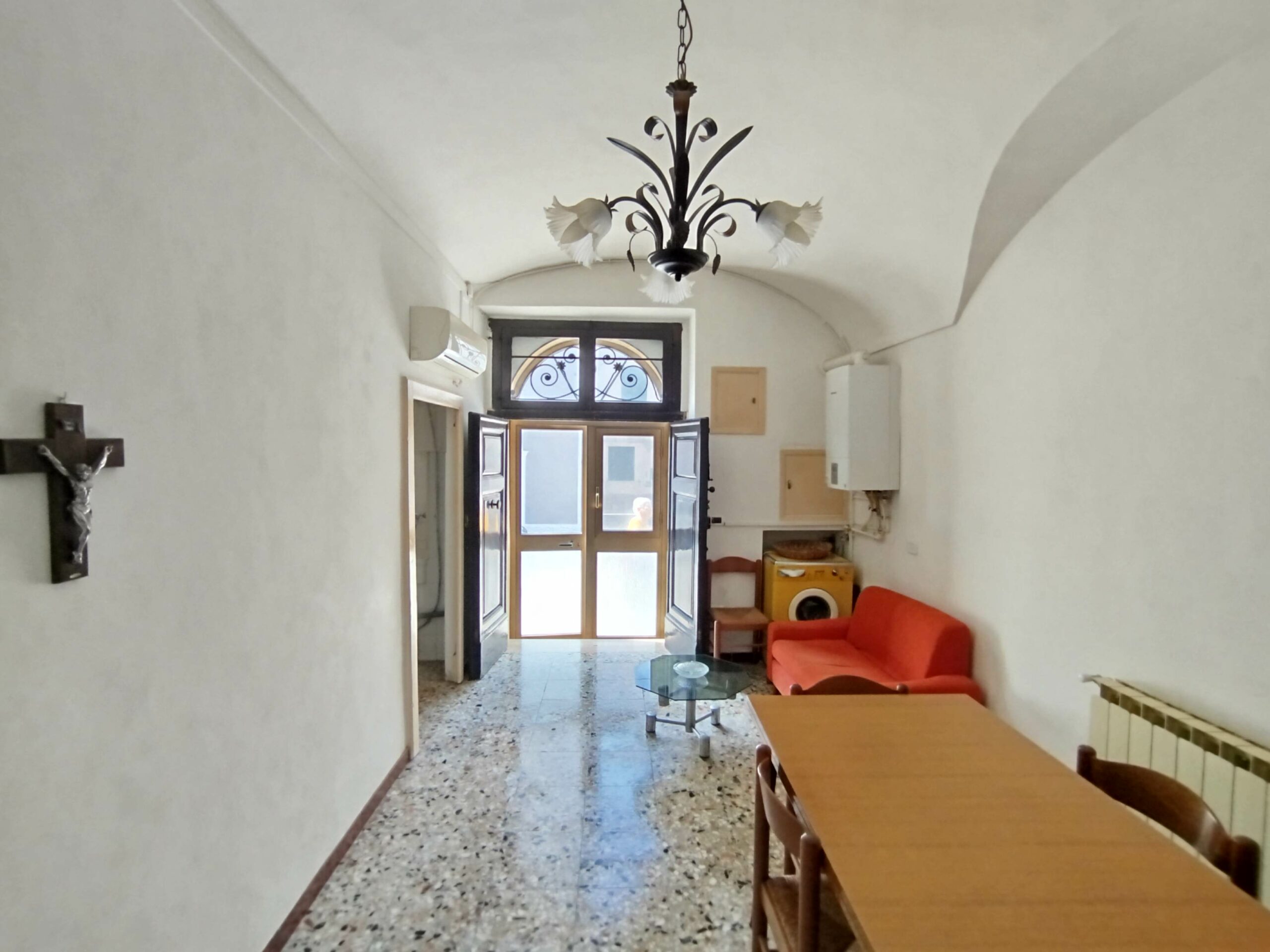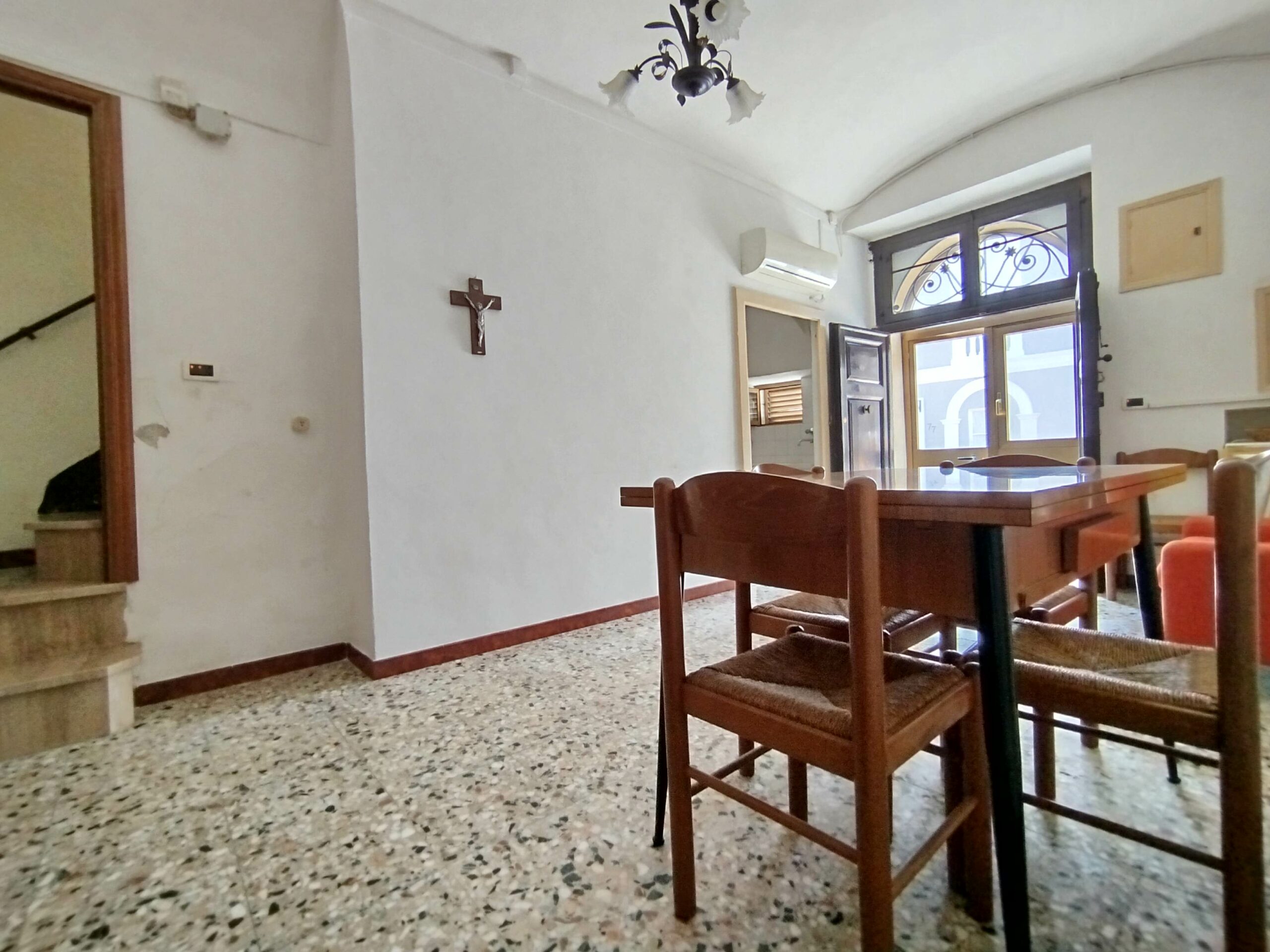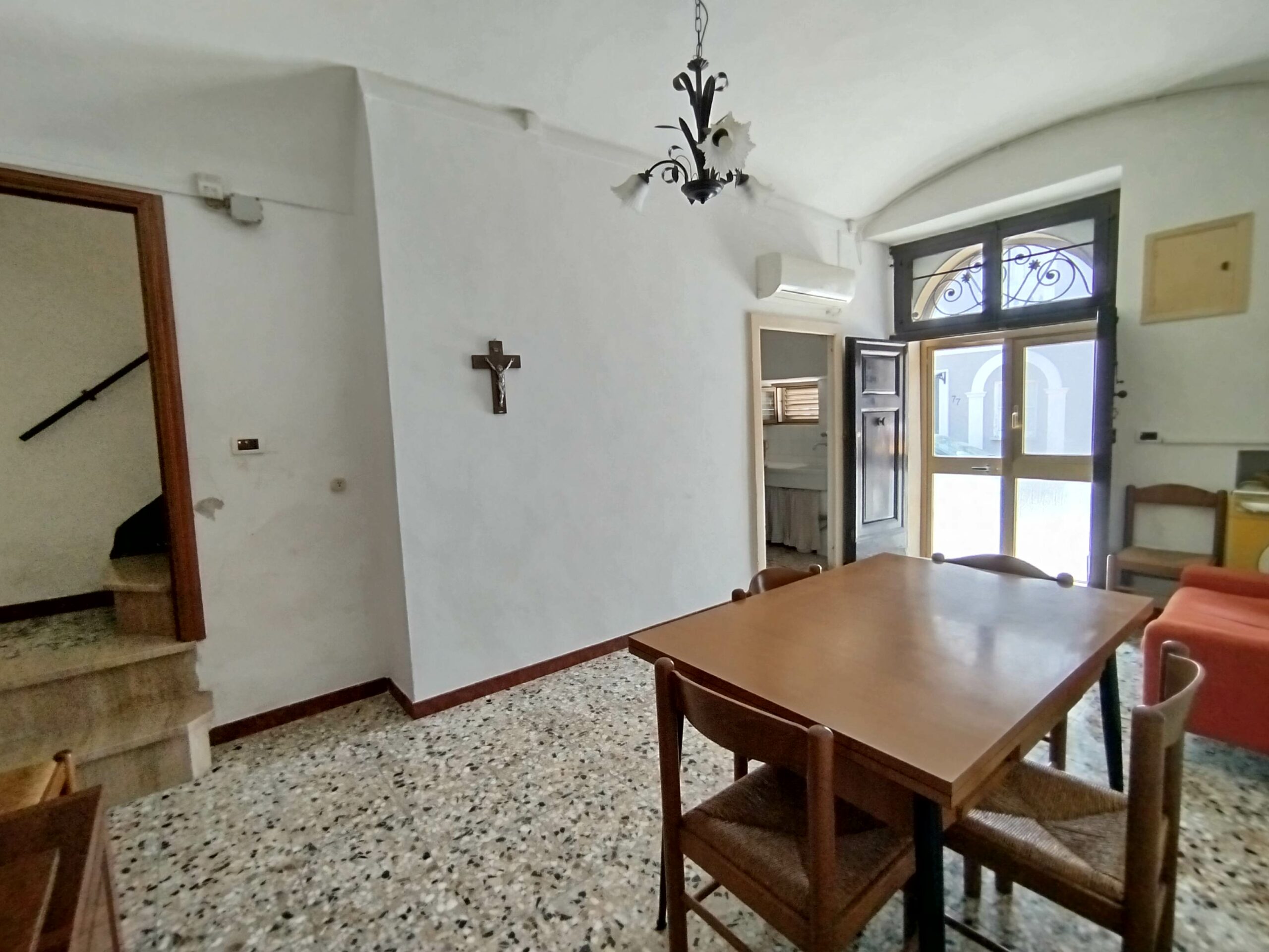Ad accoglierti è un possente portone in legno massello, originale, che custodisce la storia di chi ha vissuto qui prima di te. Sul fronte, il balcone in ferro battuto aggiunge quel tocco di eleganza antica che ancora oggi emoziona.