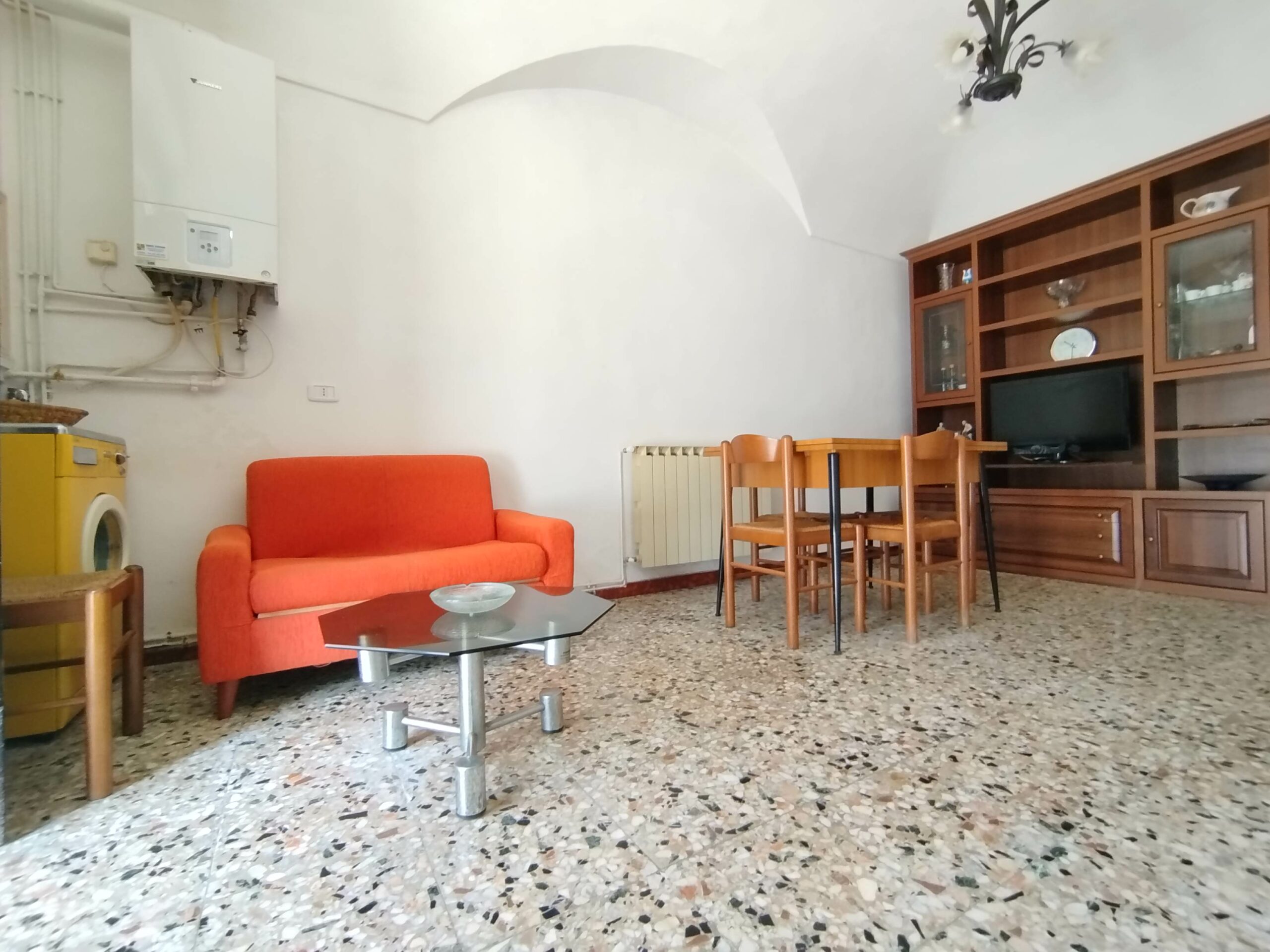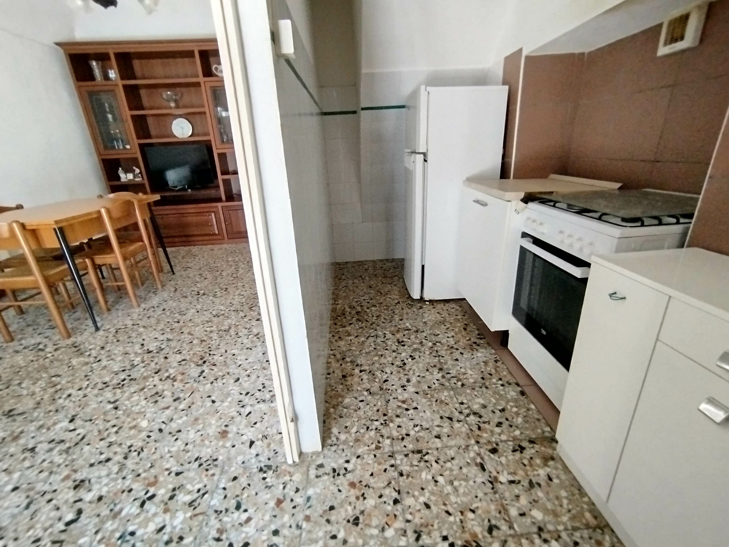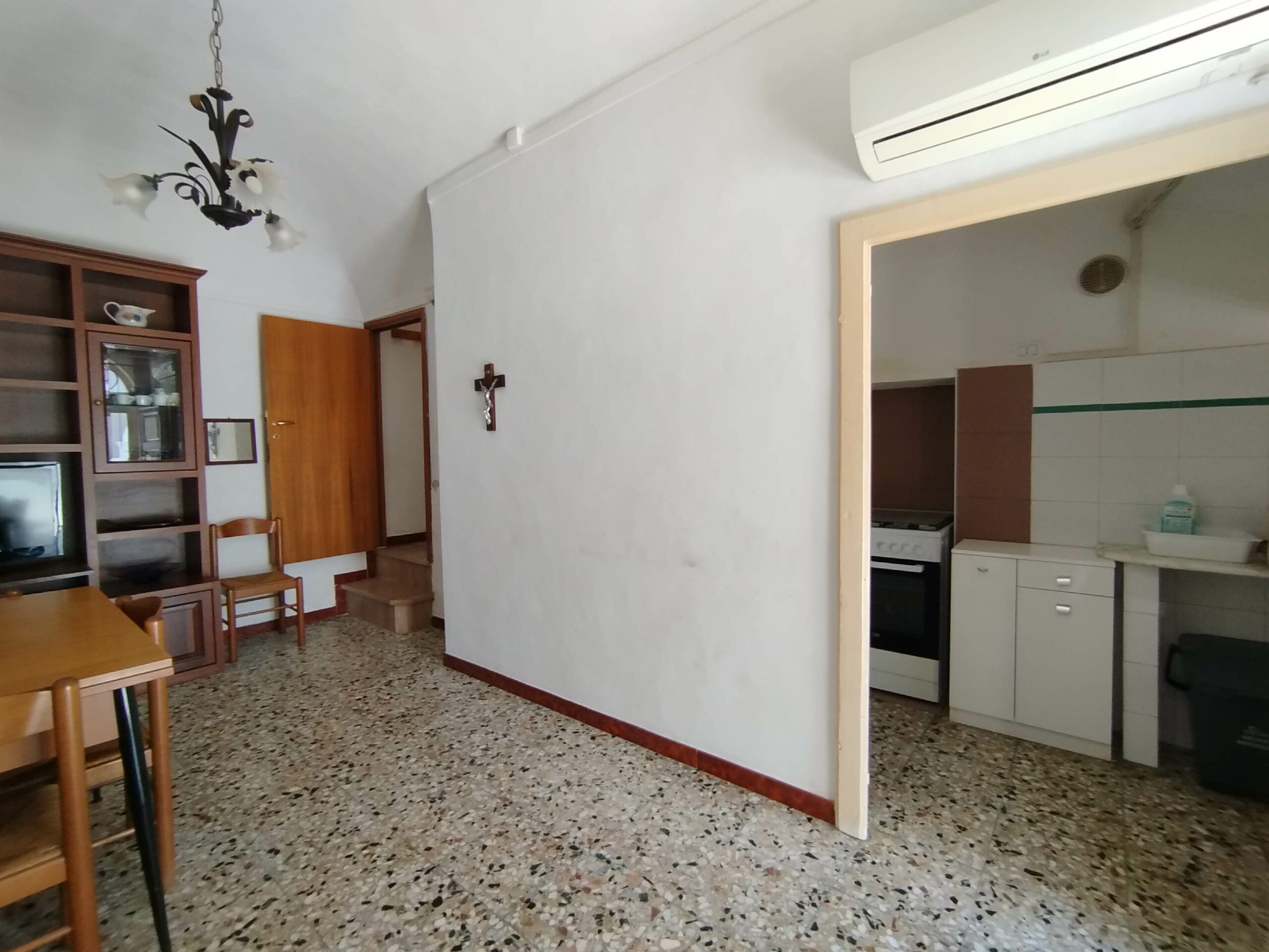 All’interno, il calore del tinello ti invita a immaginare serate intime, con un cucinotto comodo e funzionale.
